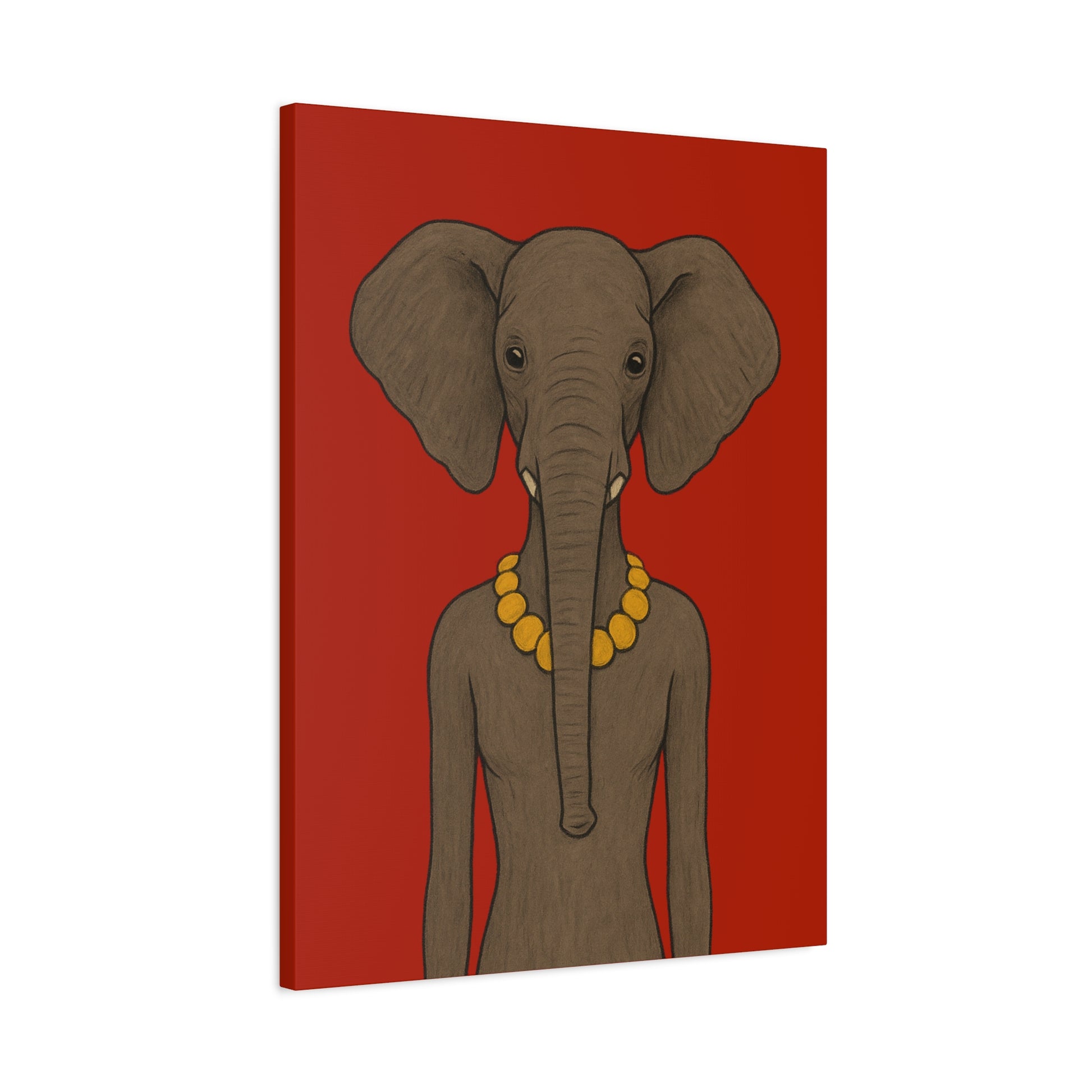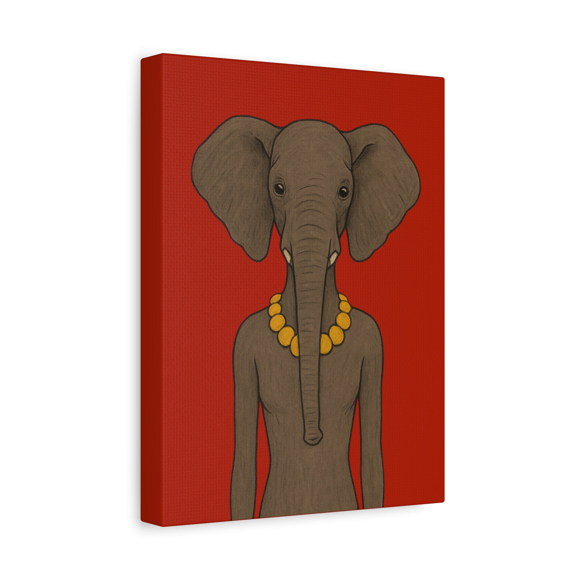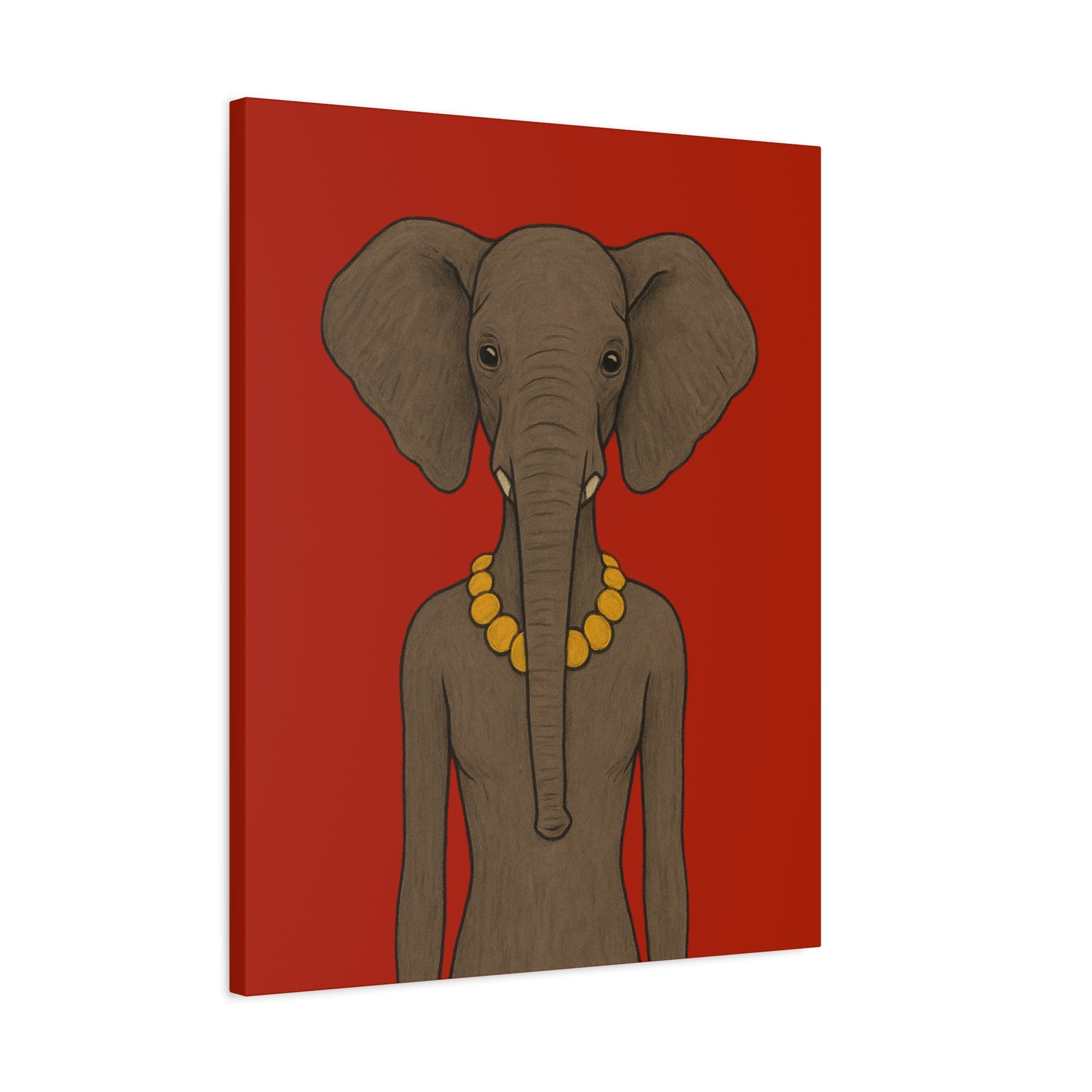 The meeting of primordial strength with human finery reflects on power, heritage, and survival. Executed in broad, textured strokes, the elephant’s stoic dignity anchors the ornate rhythm of the necklace.