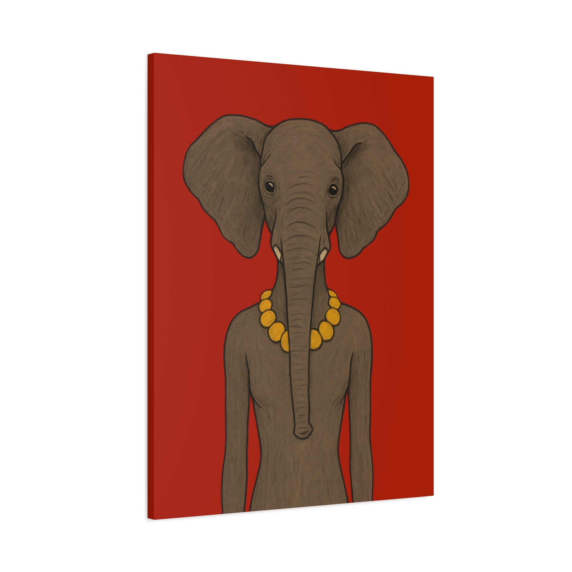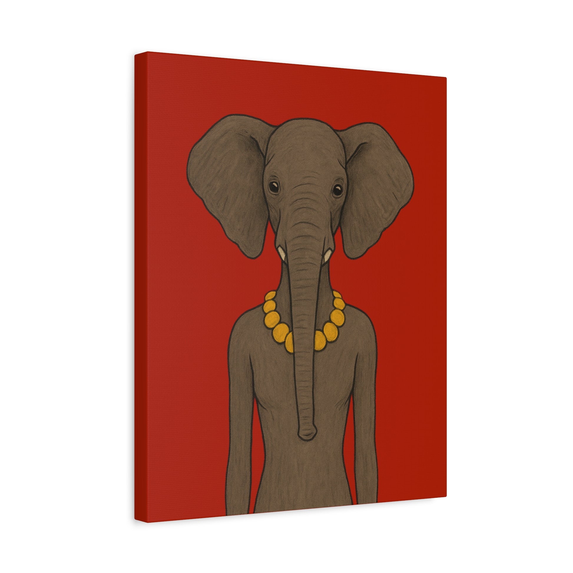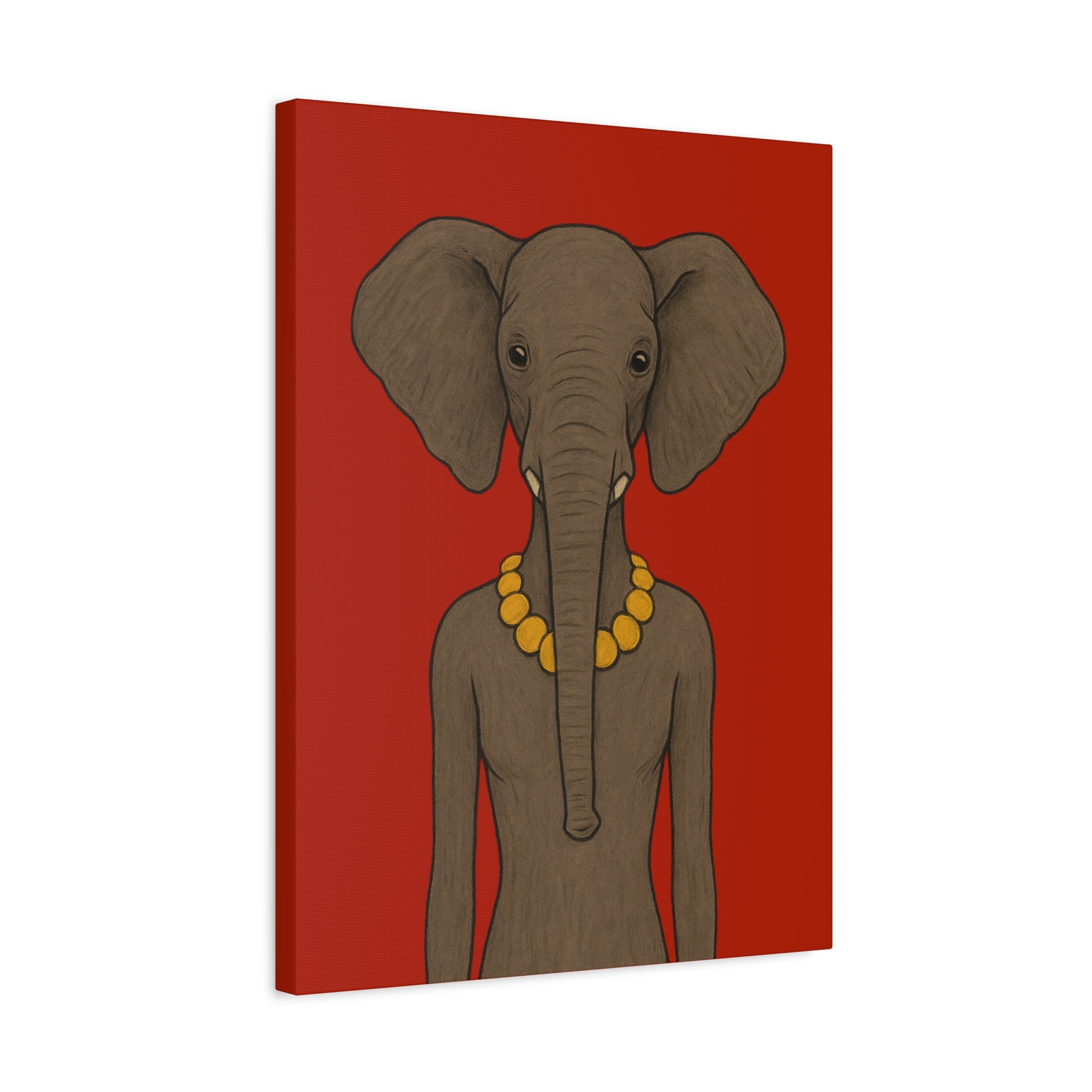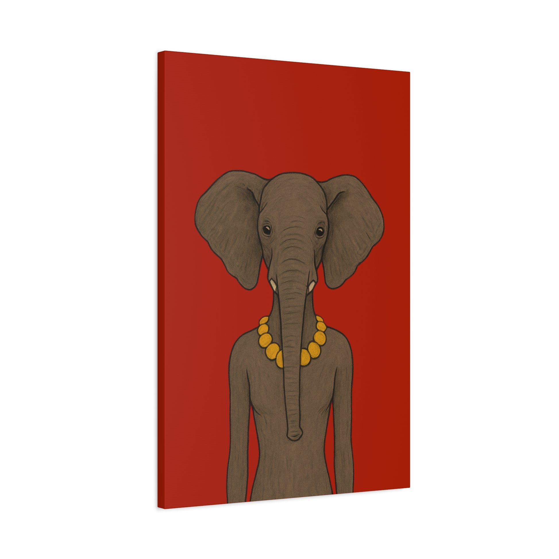 Framed by a crimson expanse, a majestic elephant dominates the composition.
