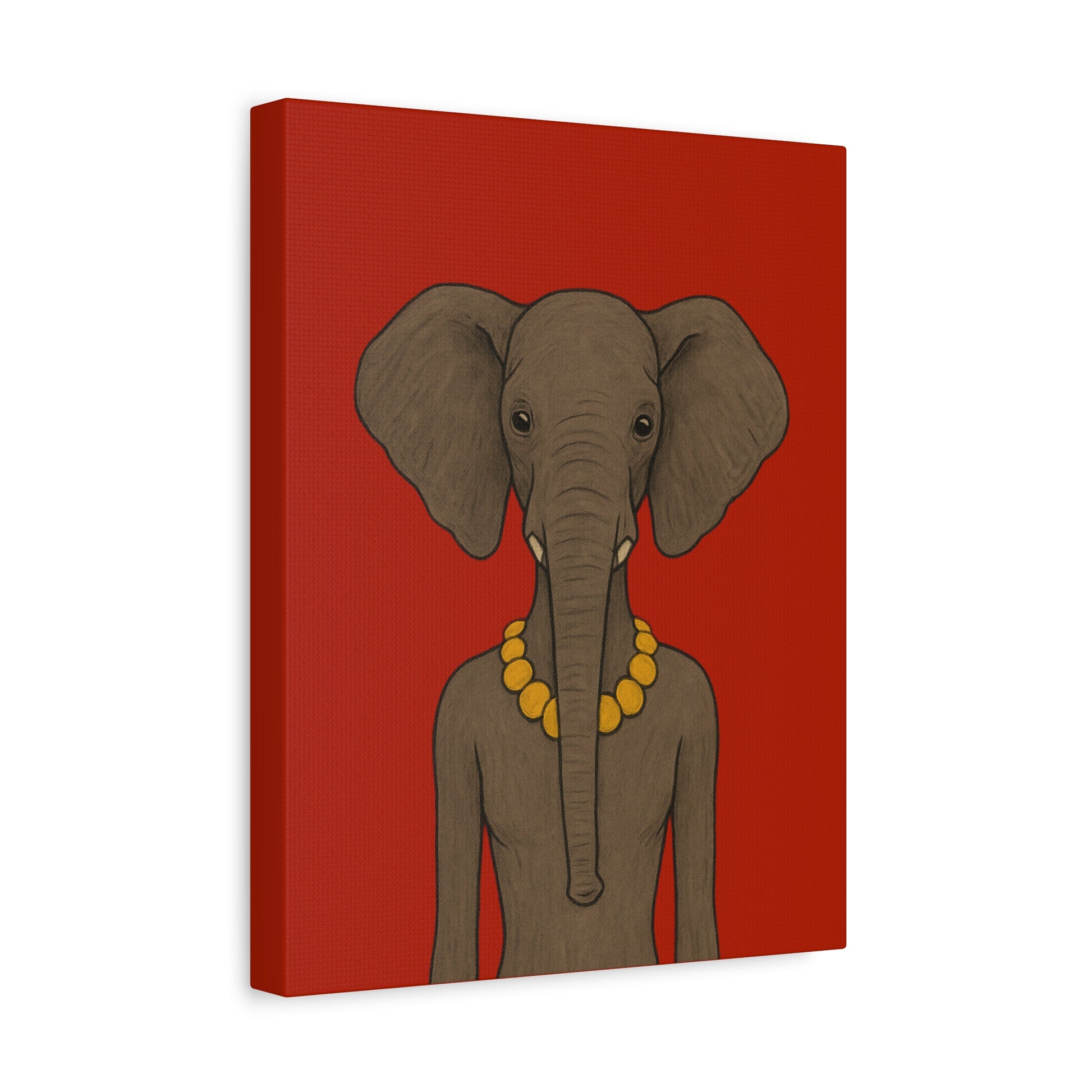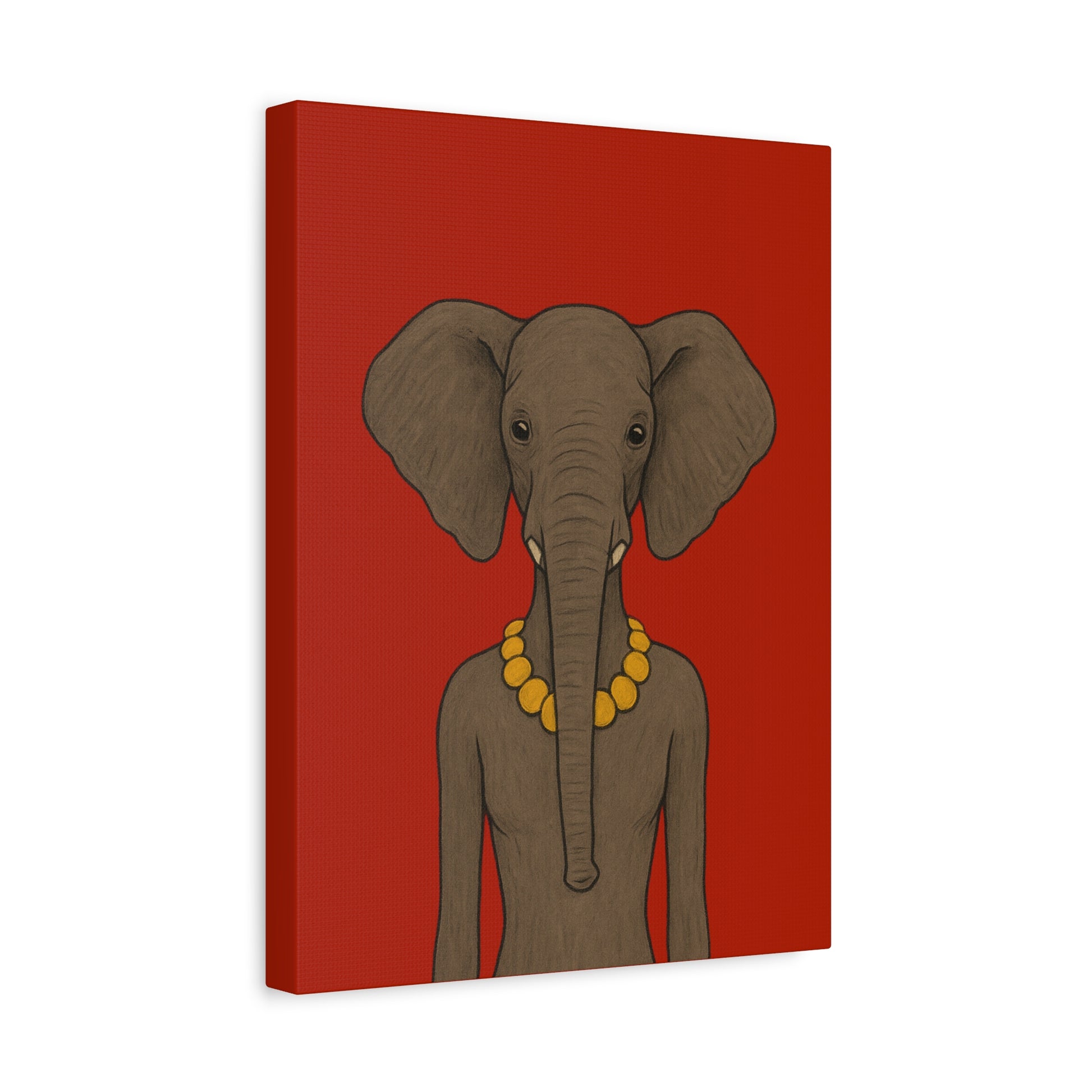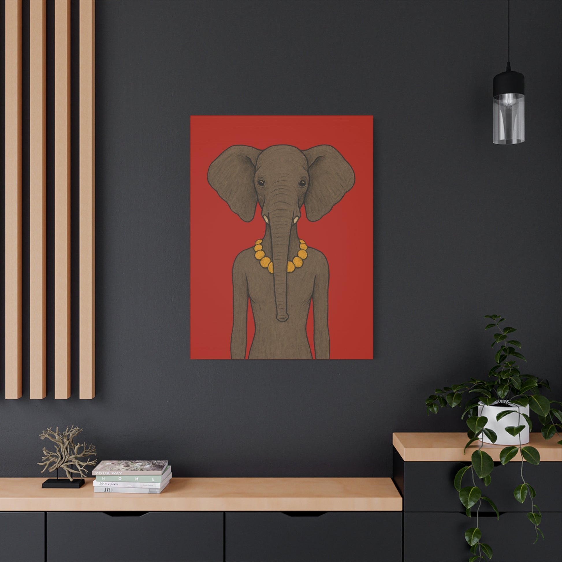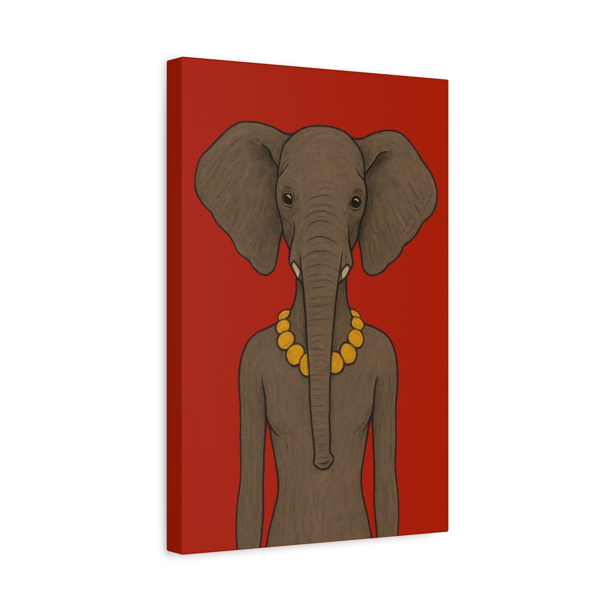 Framed by a crimson expanse, a majestic elephant dominates the composition.