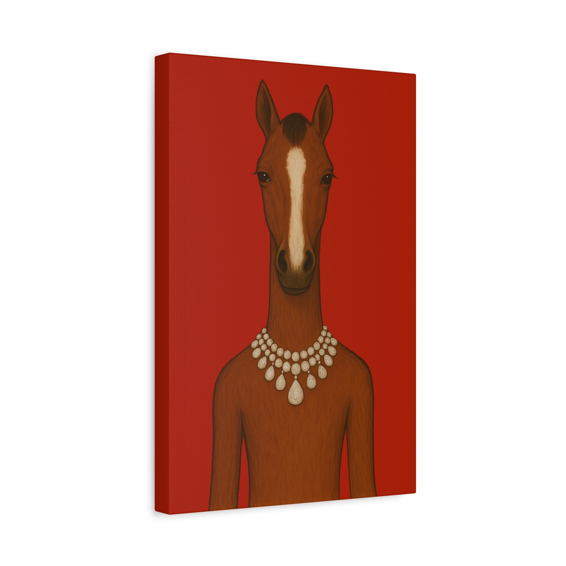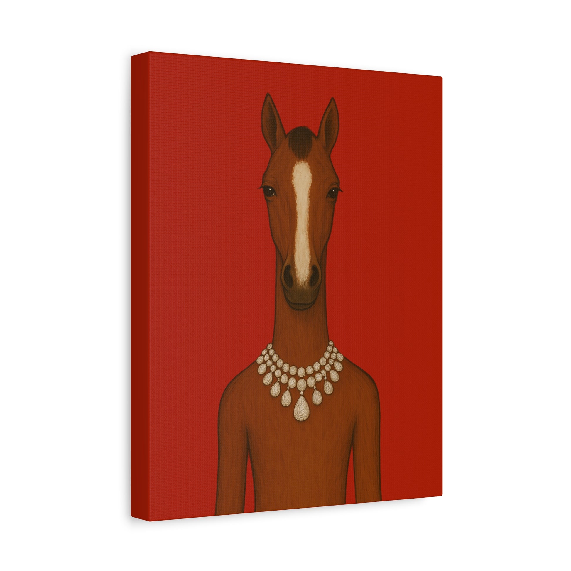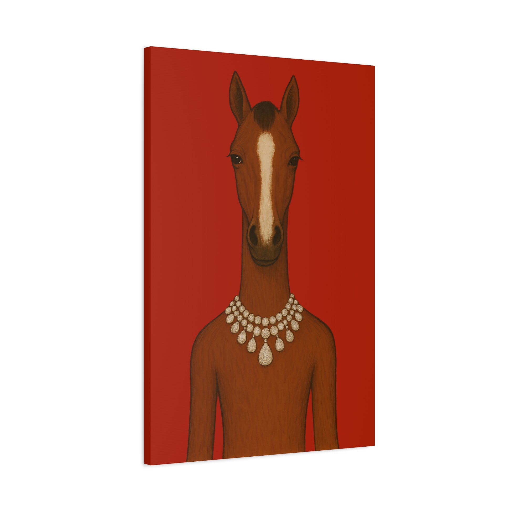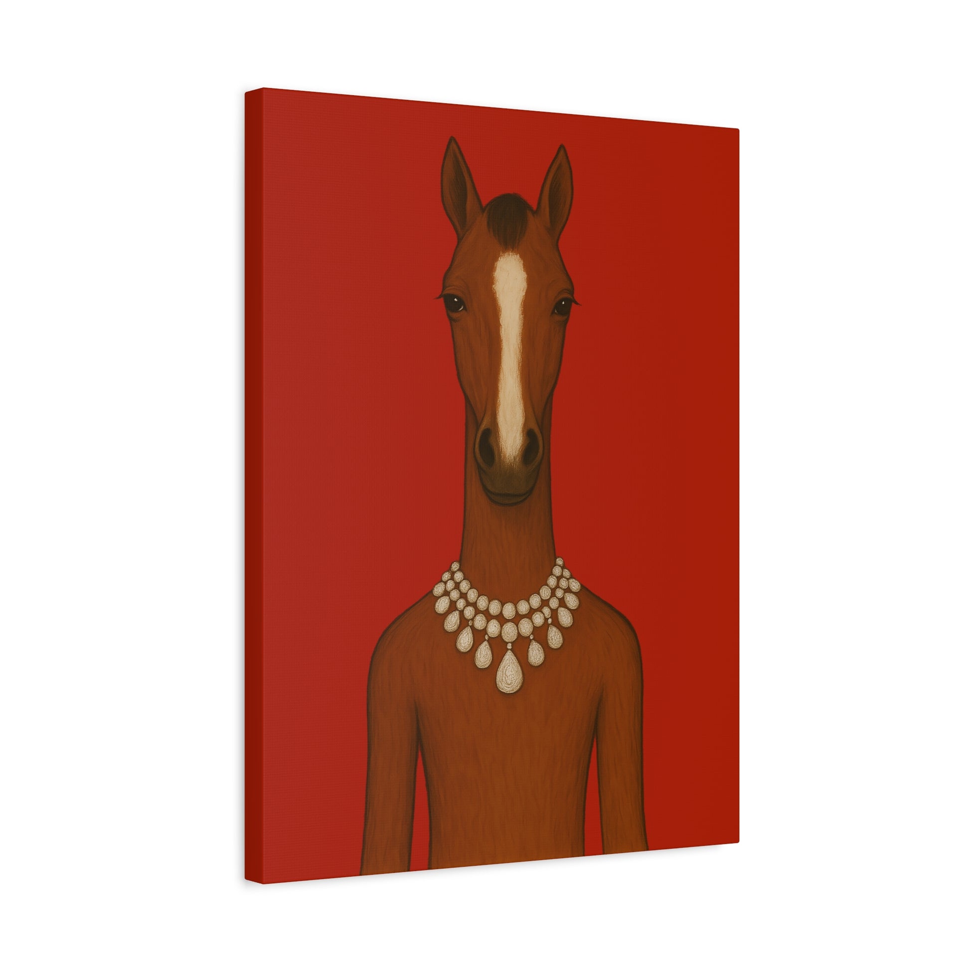 This pairing of untethered energy with crystalline opulence evokes reflection on power harnessed and displayed. Through fluid, sweeping strokes, the horse’s motion is held in balance with the necklace’s angular clarity.