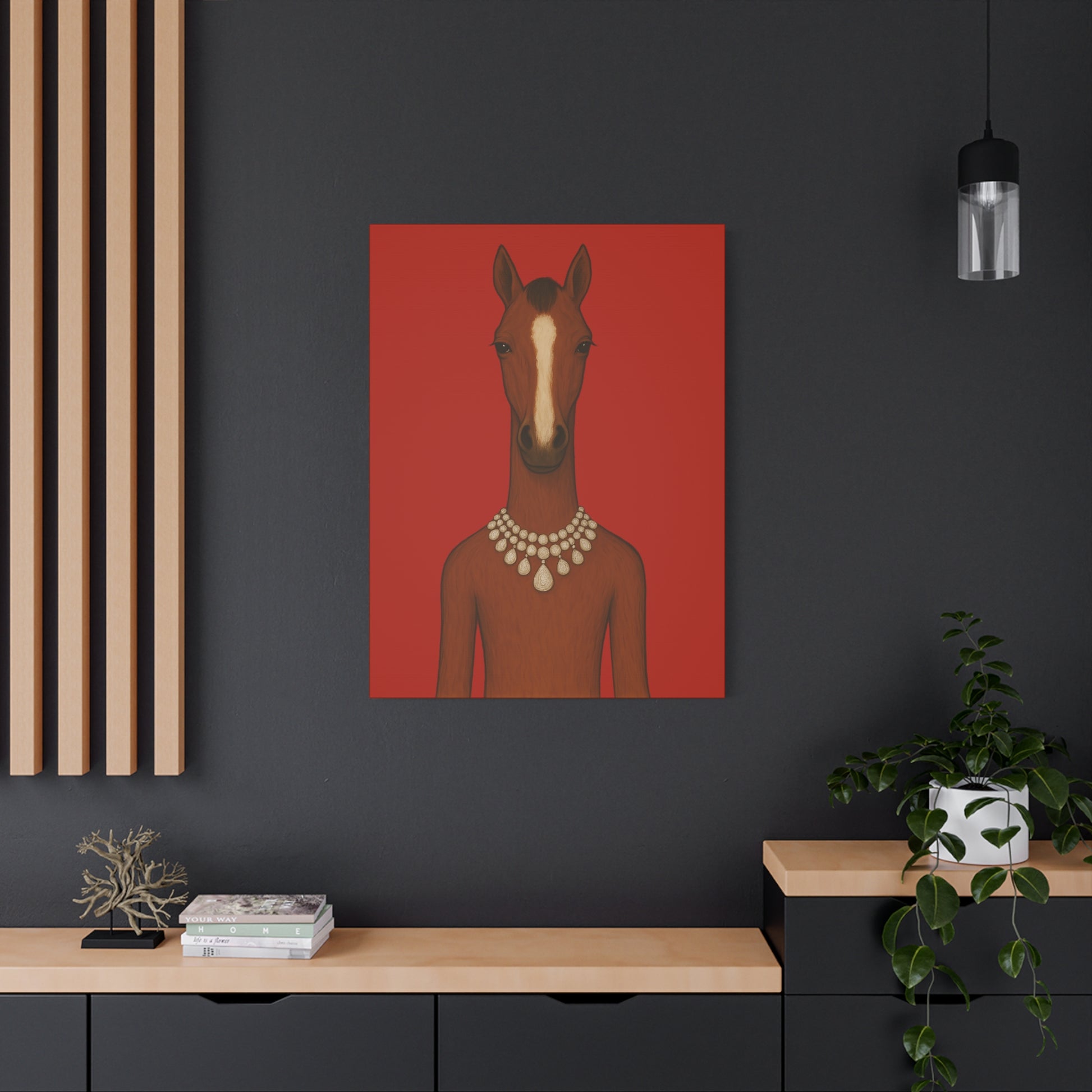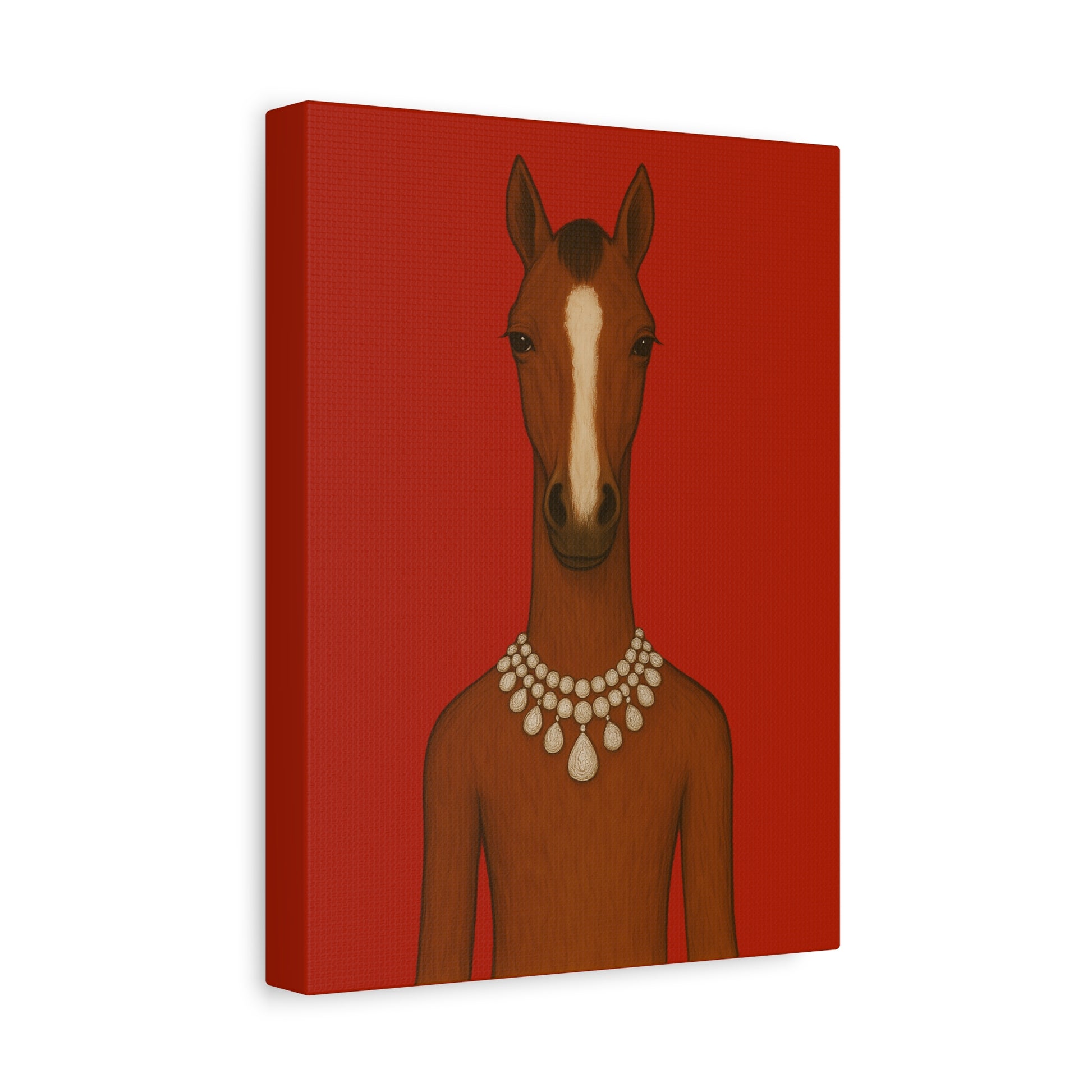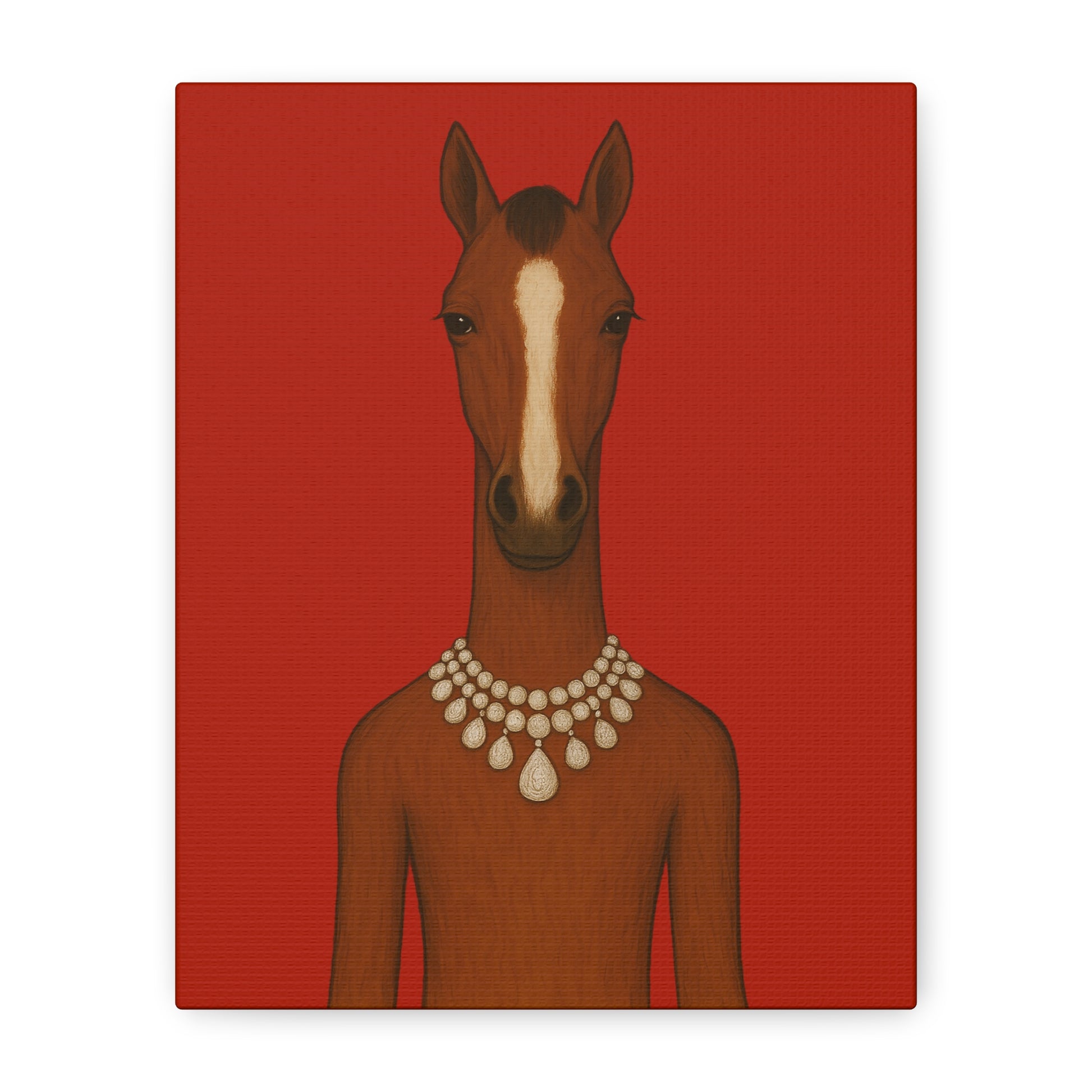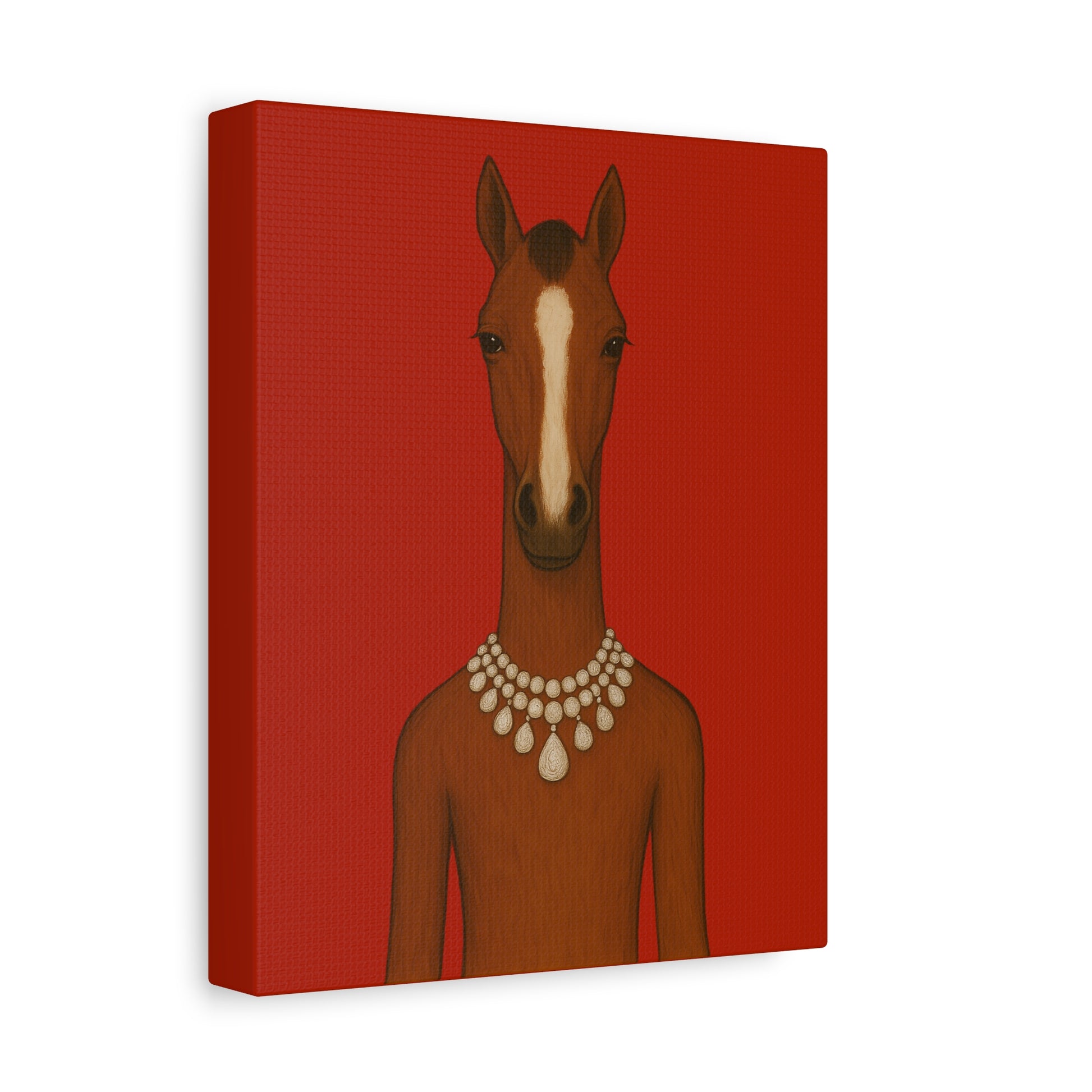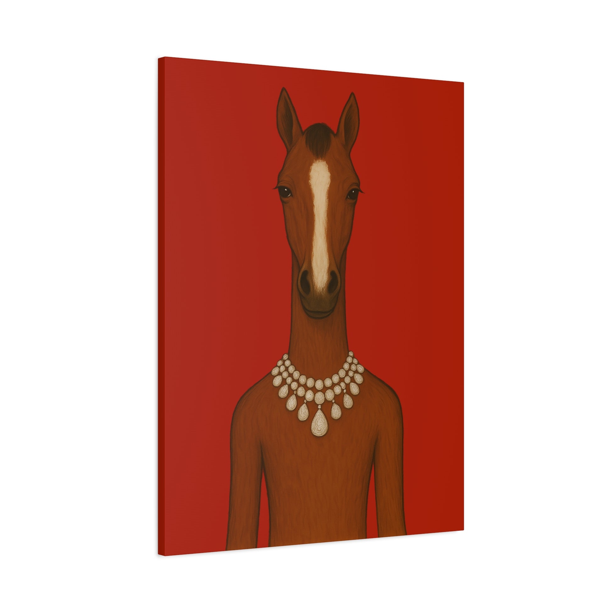 This pairing of untethered energy with crystalline opulence evokes reflection on power harnessed and displayed. Through fluid, sweeping strokes, the horse’s motion is held in balance with the necklace’s angular clarity.